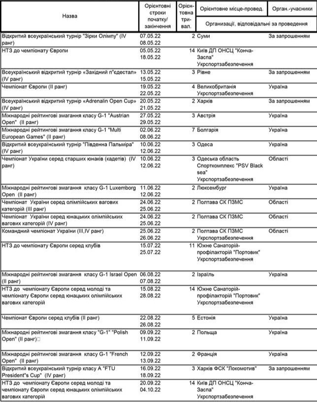 - Єдиний календарний план спортивних заходів з тхеквондо на 2026 рік 09 лютого 2026